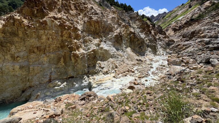 ここからしばし河原歩きをした後、渓谷沿いのトラバース道をたどります。